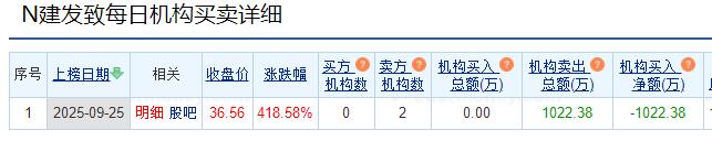 中国经济网络北京,9月25日,江民(301584)今天关闭了36.56元,增长了418.58%。根据《龙和老虎名单》的数据,在杰安法季辛卖家中,有两个专门的机构席位。根据统计,当今在机构席位上出售的江菲·齐辛(Jianfa Zhixin)的净价值为102.38亿元人民币。